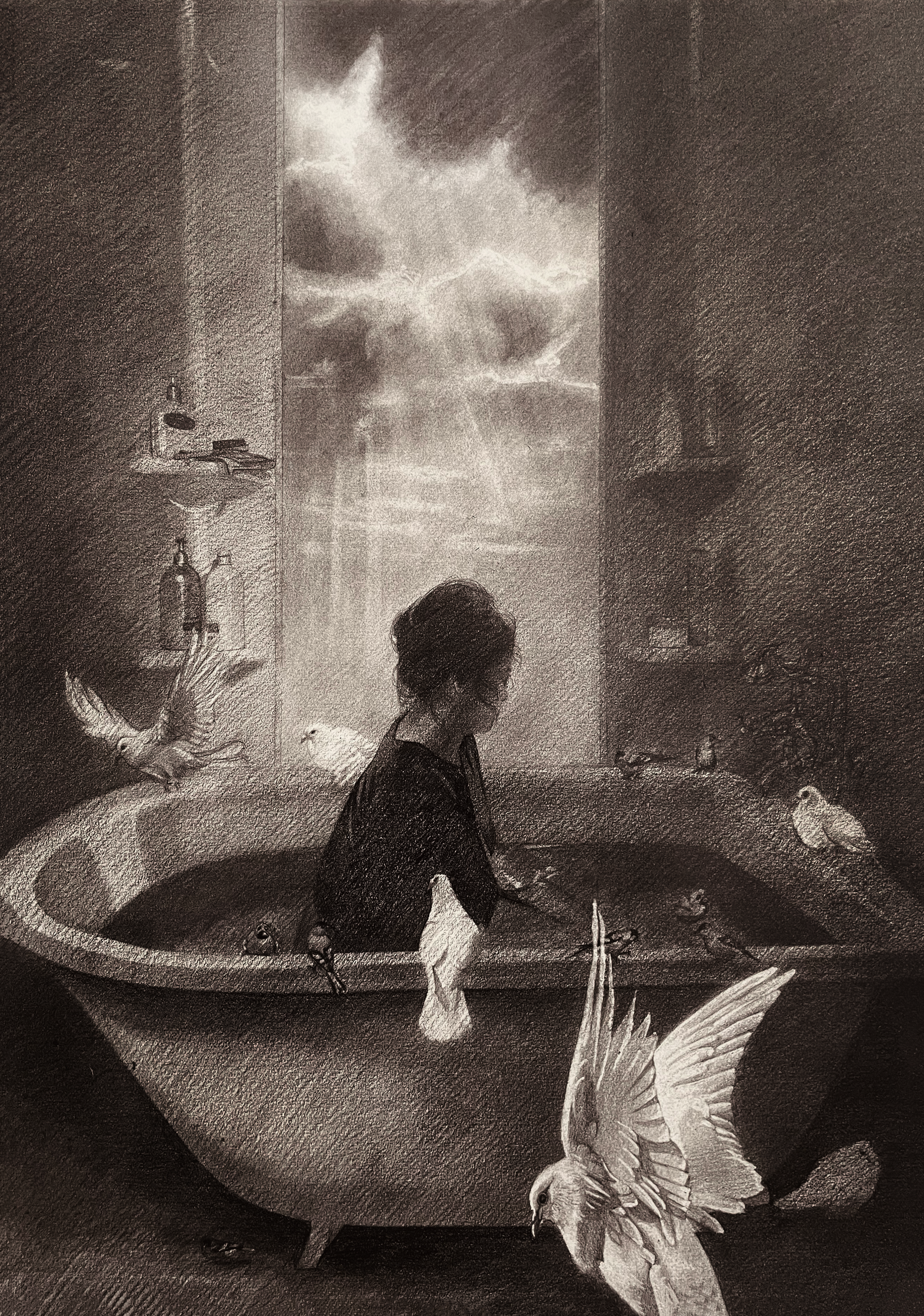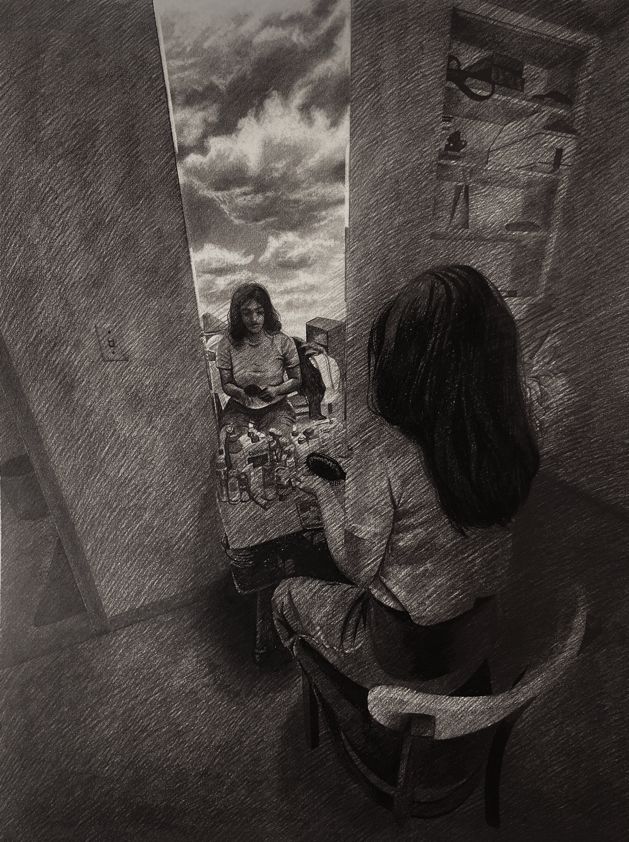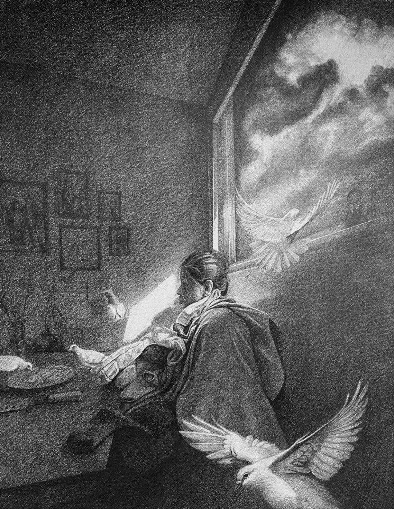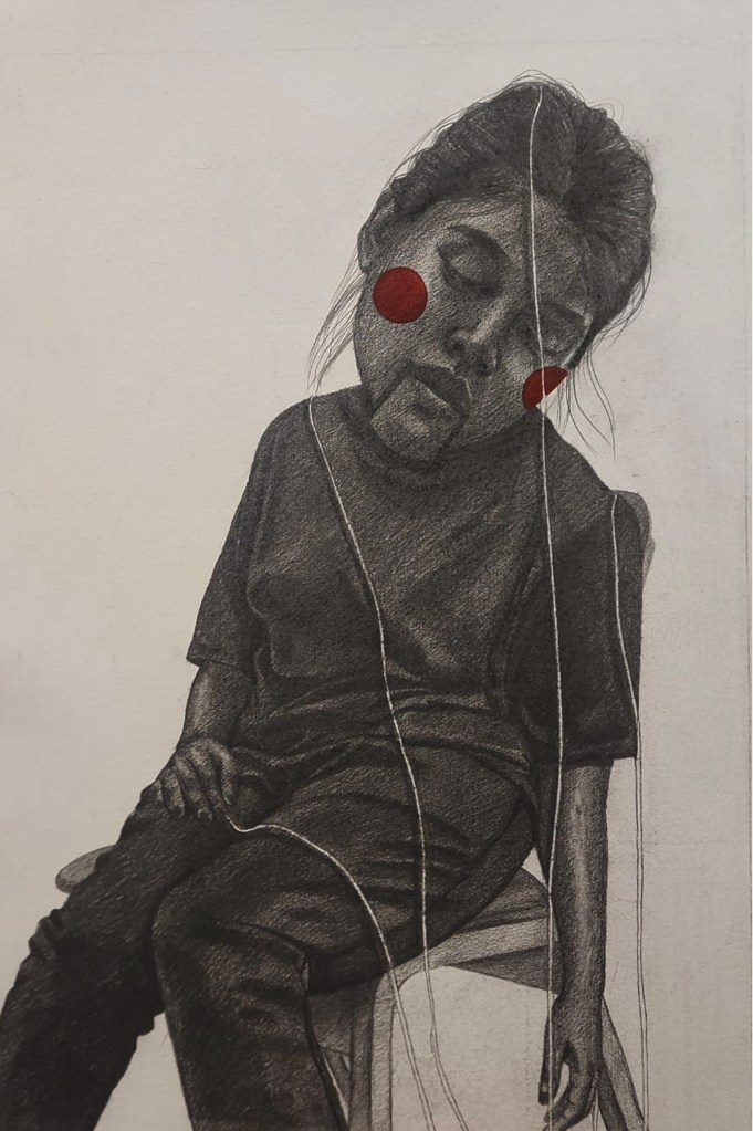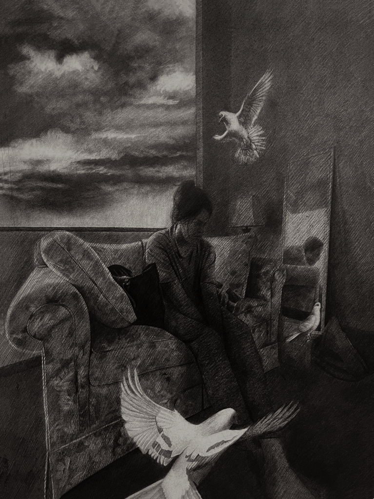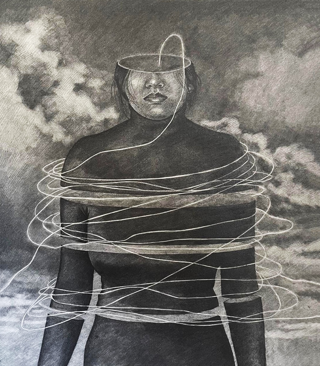 Sunny side down, Graphite on paper, 21x27in, 2025Birds won’t live with me, Graphite on paper, 21x27in, 2024Short-break Saturday, Graphite on paper, 21x27in, 2024The day I grow wings!, Graphite on paper, 21x27in, 2024It’s a sunny day, Graphite on paper, 21x27in, 2024If clouds could talk, Graphite on Paper, 21x27in, 2024Sky is the limit they say!, Graphite on paper, 21x27in, 2024Resting Marionette, Mixed Media, 20x13in, 2024Entangled 2, Graphite on Paper, 21x17in, 2024