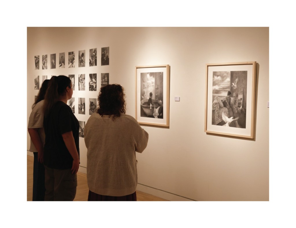 Through visual elements like confined spaces, domestic objects, windows, and skies, I depict the tension between comfort and confinement, freedom and restriction. Graphite on paper serves as my primary medium, allowing for a process of layering and erasure that mirrors the evolving nature of identity and choice.